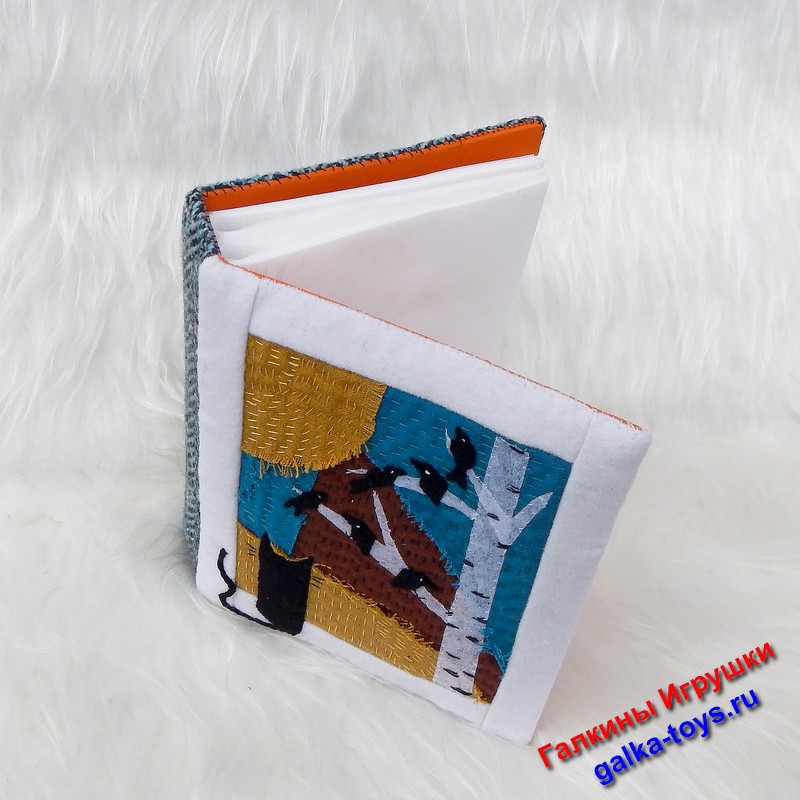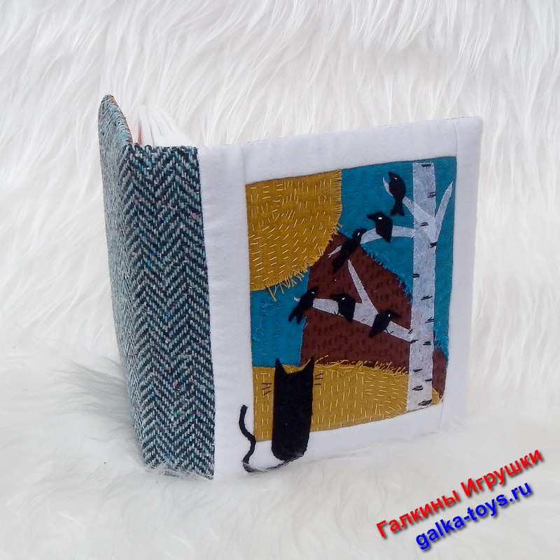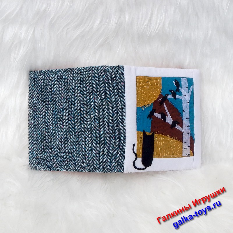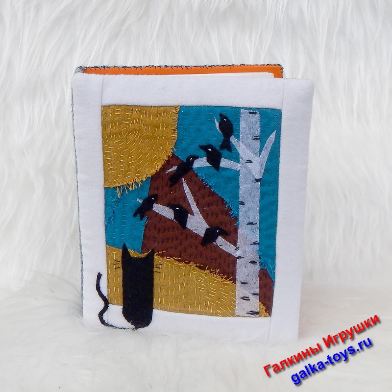 На окошко «прыгнул» котик. Чтобы котику не было скучно — «выросла» береза с птичками. И нарисовался целый волшебный мир, где много ручной работы и моей души. Так родилась мягкая обложка для фотоальбома.