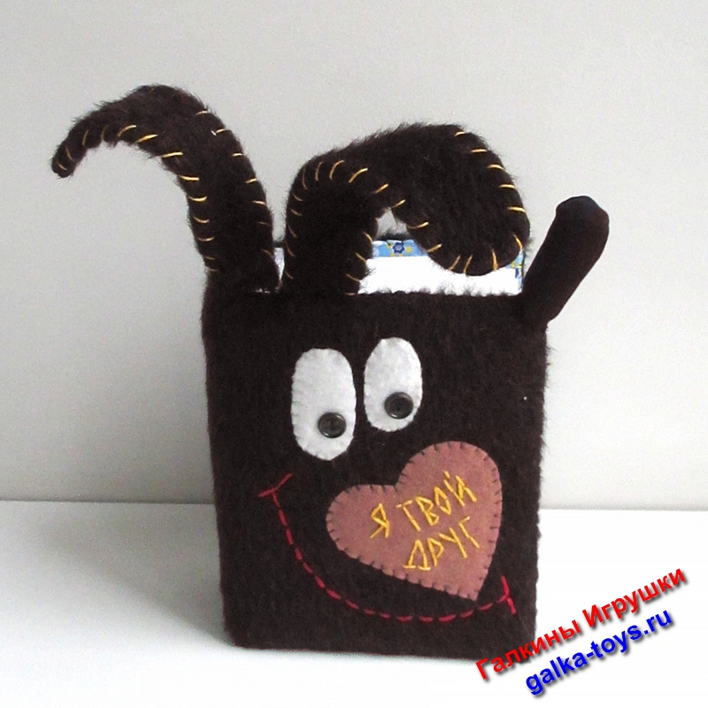 Фотоальбом формата а5 отделан коричневой пальтовой тканью с бежевой аппликацией из фетра — сердечко с вышивкой.