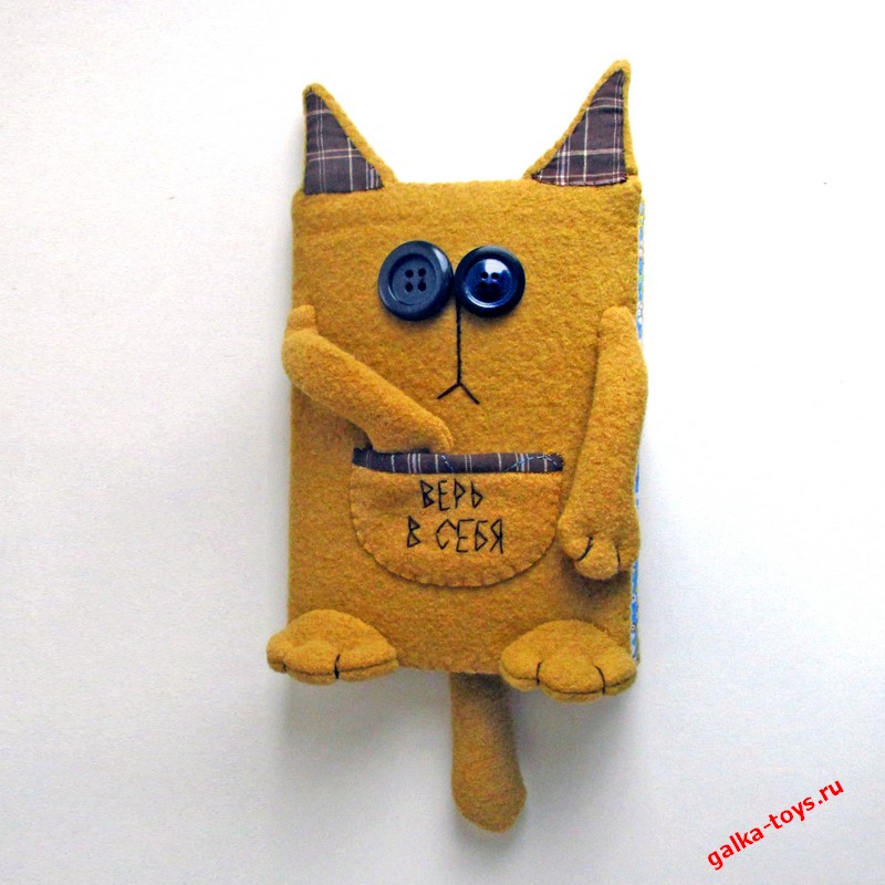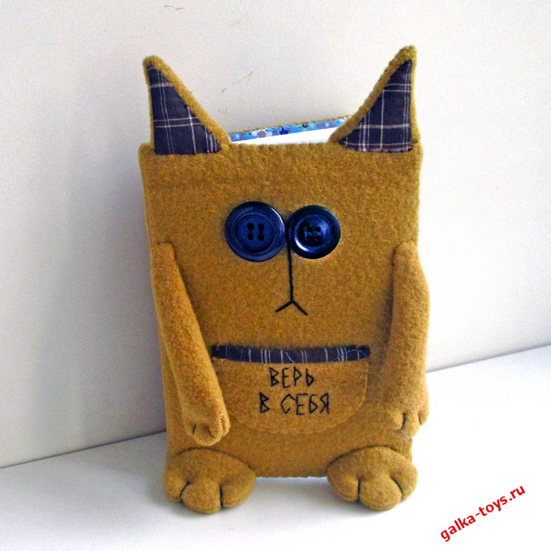 Это кот. Но не просто кот, а красивый, удобный ежедневник ручной работы — Верь в себя. С бусинками — глазками и мягкими лапками.