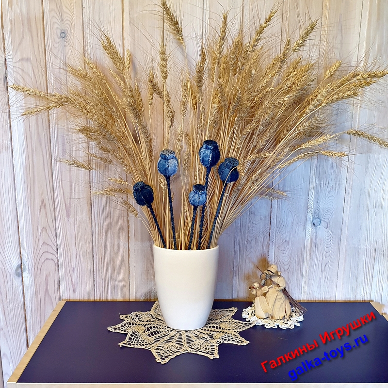 Коробочку мака можно использовать, как декоративный элемент в букете или просто в вазе. У меня замечательно расположились вместе с колосками.