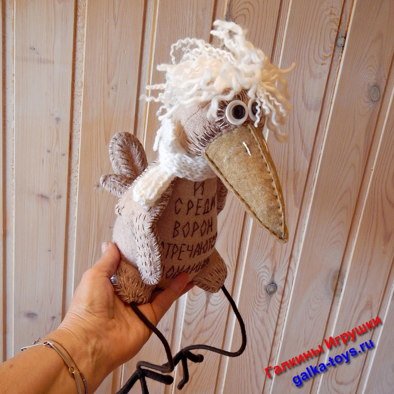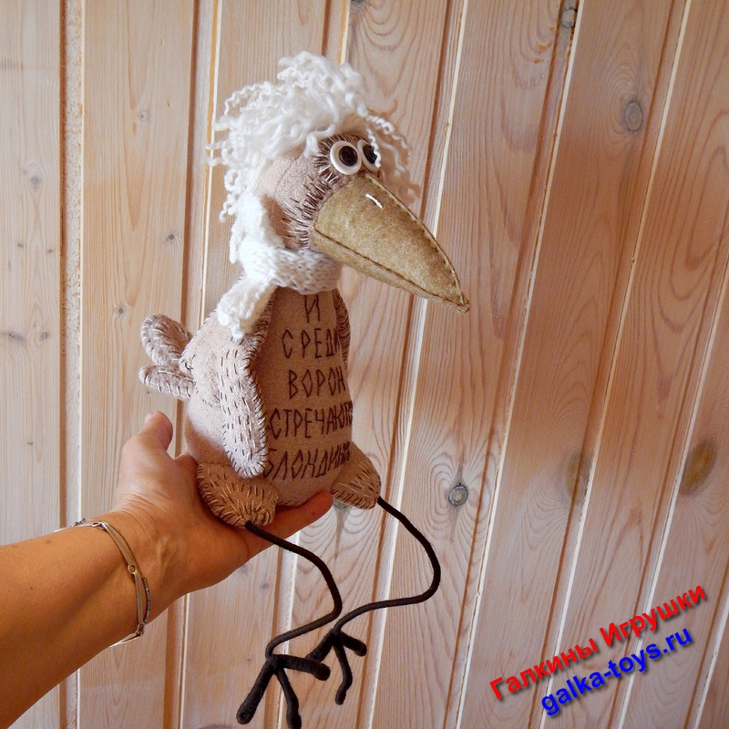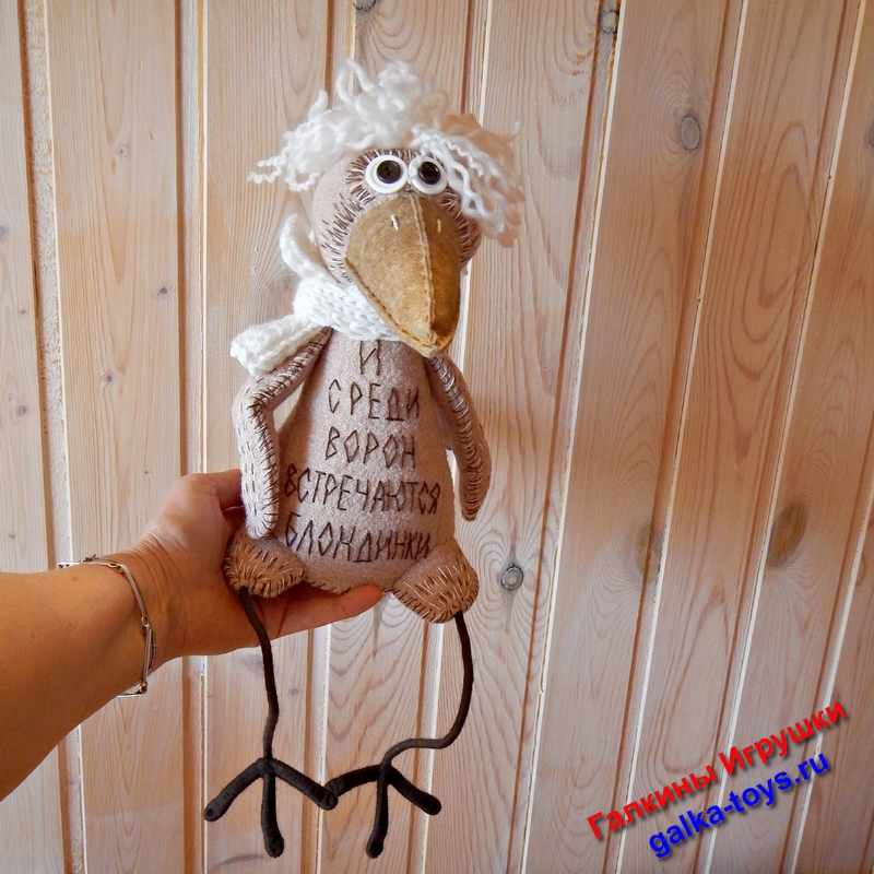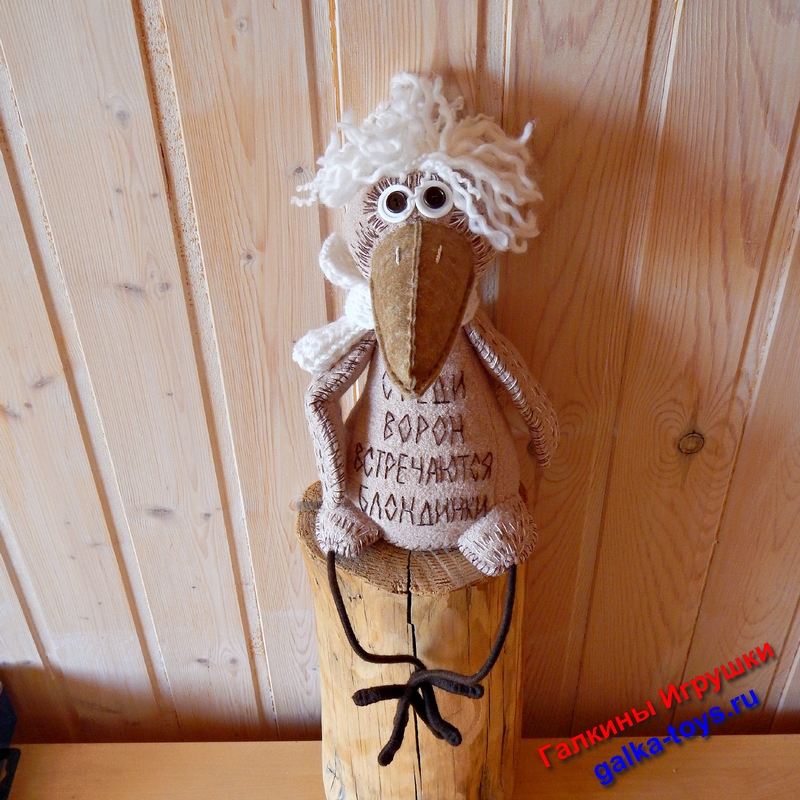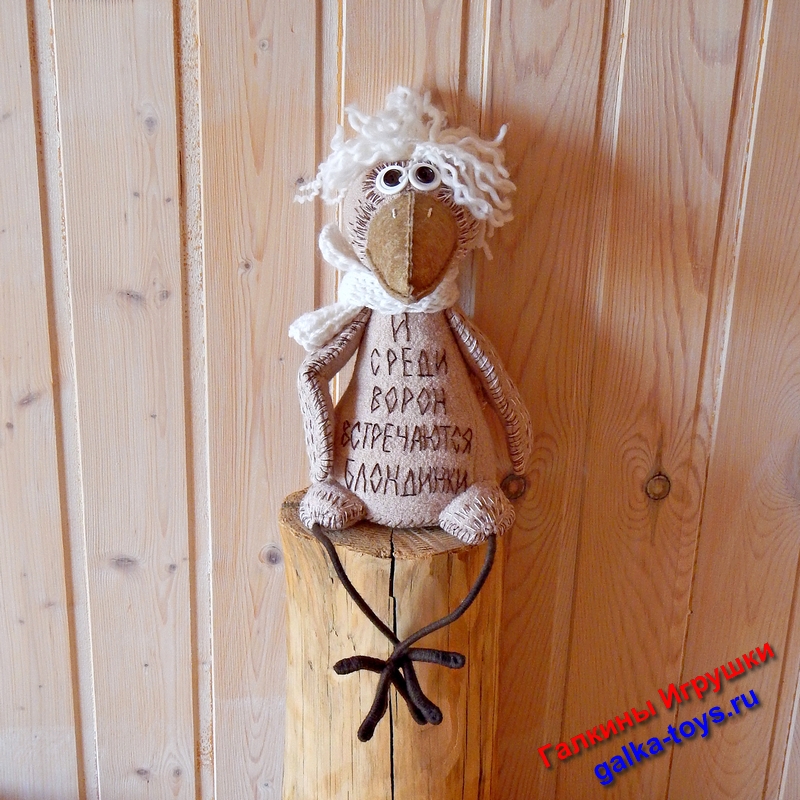 Игрушка Белокурая Ворона альбинос выполнена из бежевого трикотажного полотна. Очень оригинально получилось.