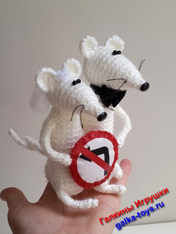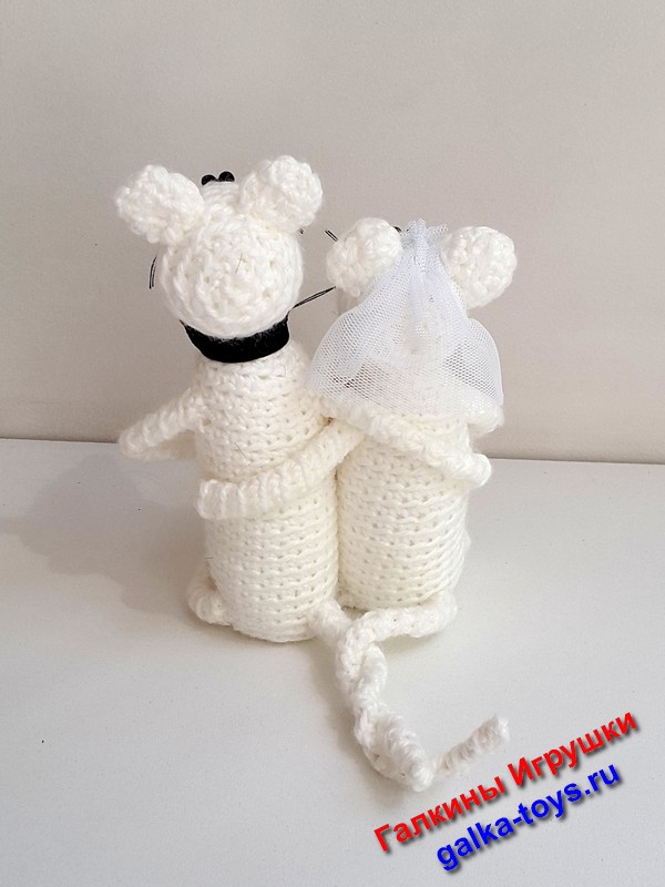 Игрушка мышки вязаные крючком станут потом на протяжении всей дальнейшей жизни молодоженов и талисманом любви, и добрым напоминанием о старте семейной жизни, будут охранять красивую, молодую и очень веселую семейную пару.