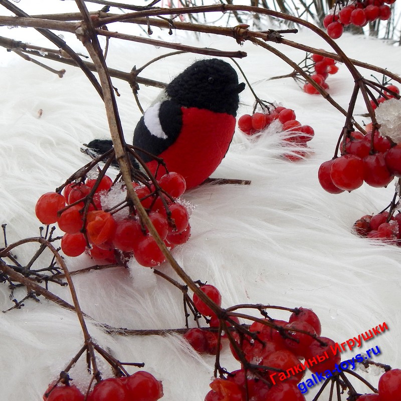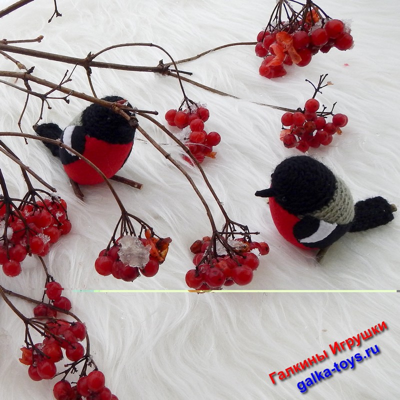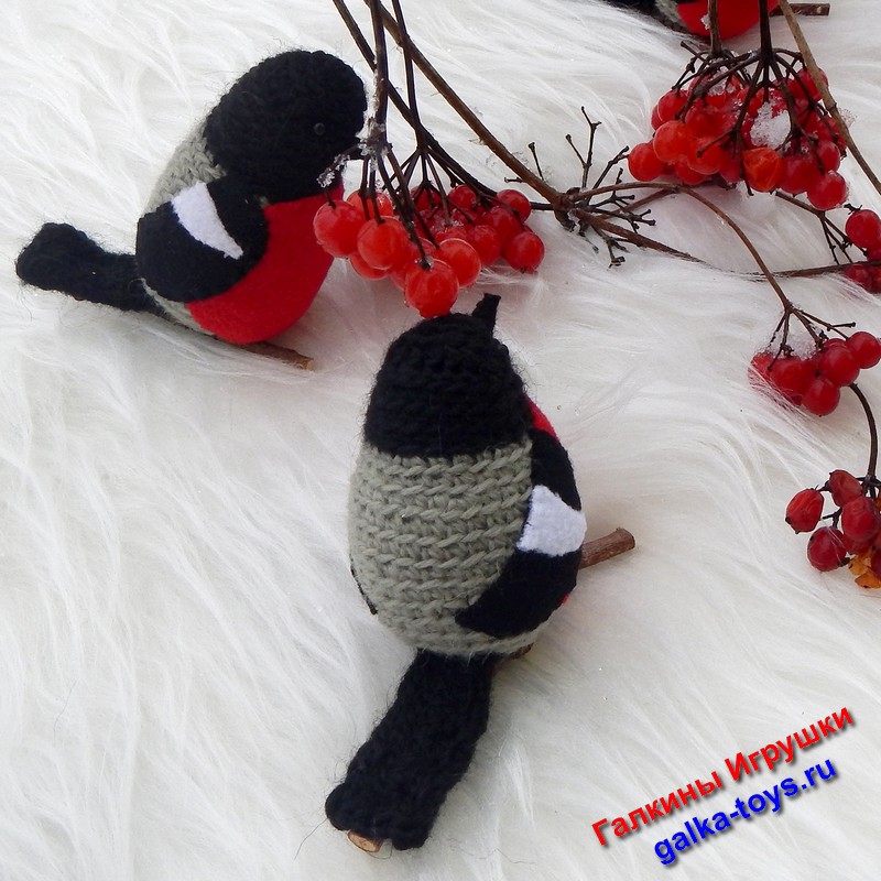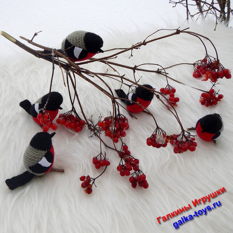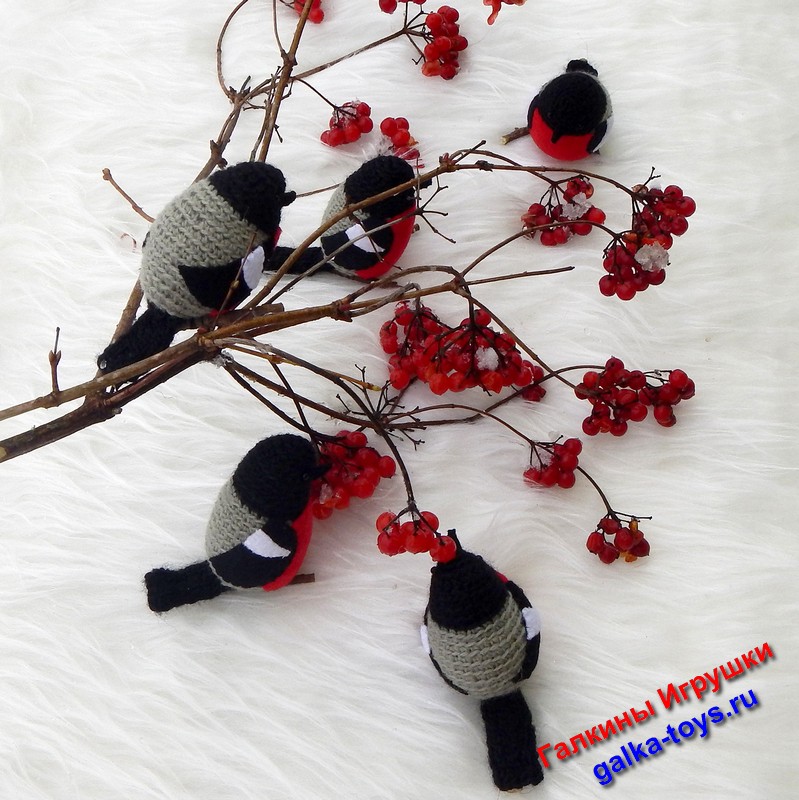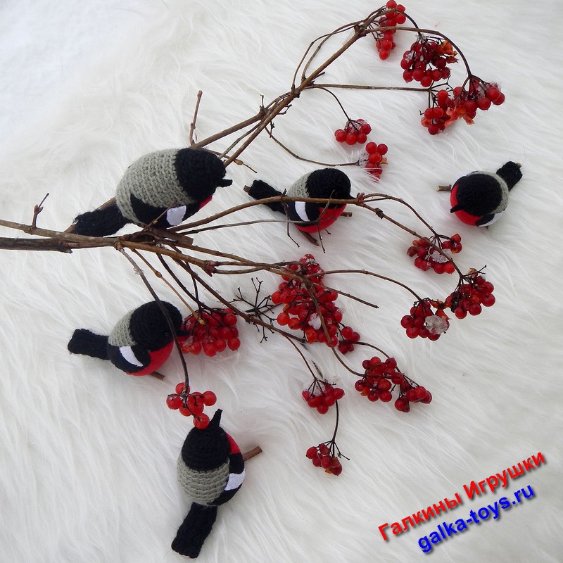 Эта веселая стайка вязаных снегирей появилась благодаря маленькой дочке моего заказчика. За что ей большое спасибо.