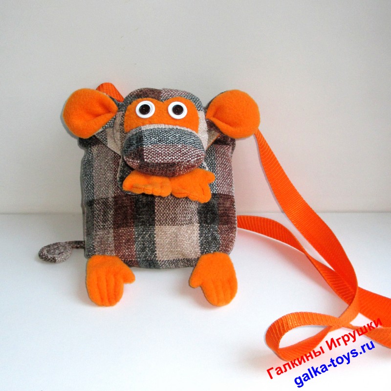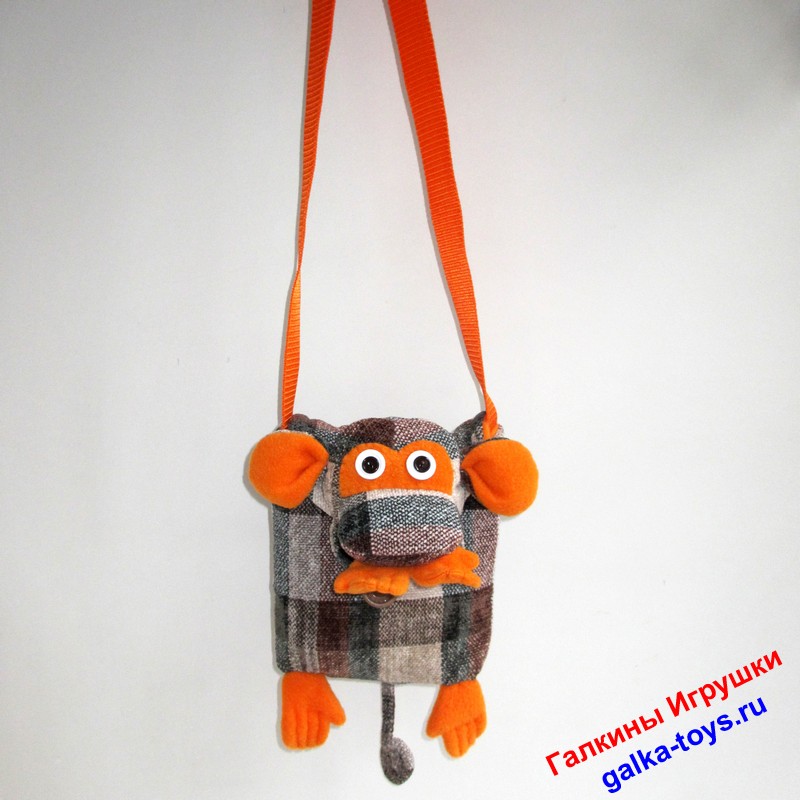 Всем известно, что обезьянки-проказницы и очень любят что-нибудь у кого-нибудь утянуть… Эта обезьянка тоже шалунишка! Все свои нужности она надежно спрячет у себя внутри, потому что это еще и сумочка!!! Веселая, смешная, позитивная сумка-обезьянка будет отличным подарком к Новому году ребенку большому и маленькому. Весь год будет посылать Вам воздушные поцелуи и поднимать настроение!!!