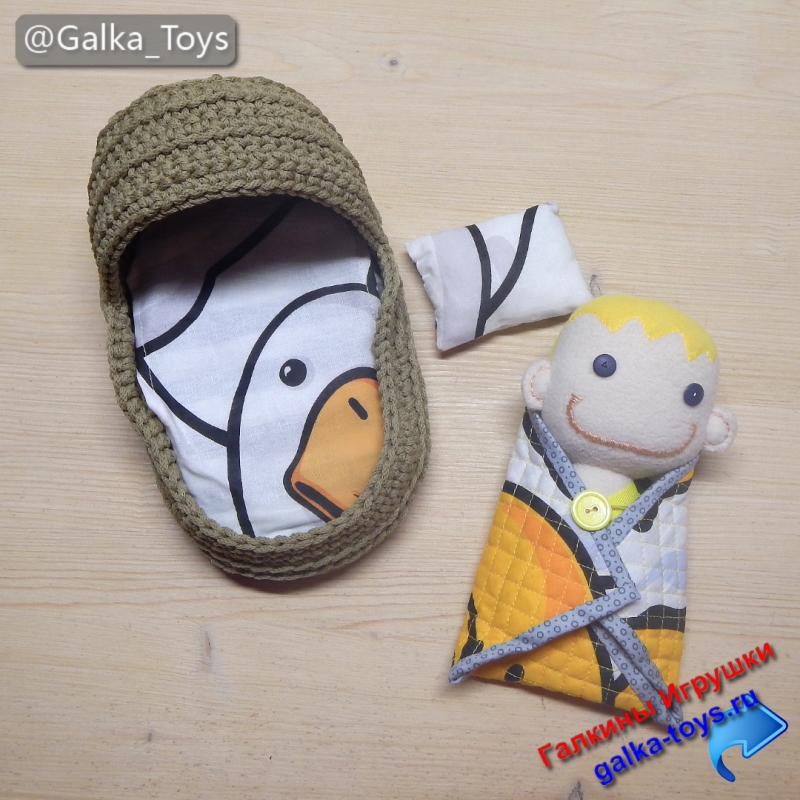 Теперь осталось только уложить малыша в люльку… И вот – кто-то уже сладко спит! Доброй ночи пупсик ?