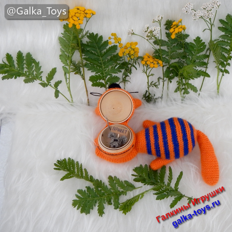 Шкатулка для бижутерии рыжий полосатый кот вязаный крючком