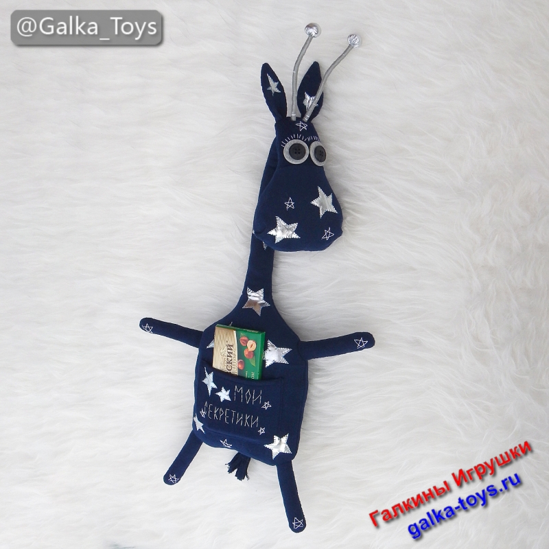 А ещё у веселого жирафика есть небольшой кармашек с тёплой надписью «мои секретики» ❤️. В нём можно хранить что-то очень личное: записку от дорогого человека, маленький талисман или просто любимую конфету к чаю. ?
