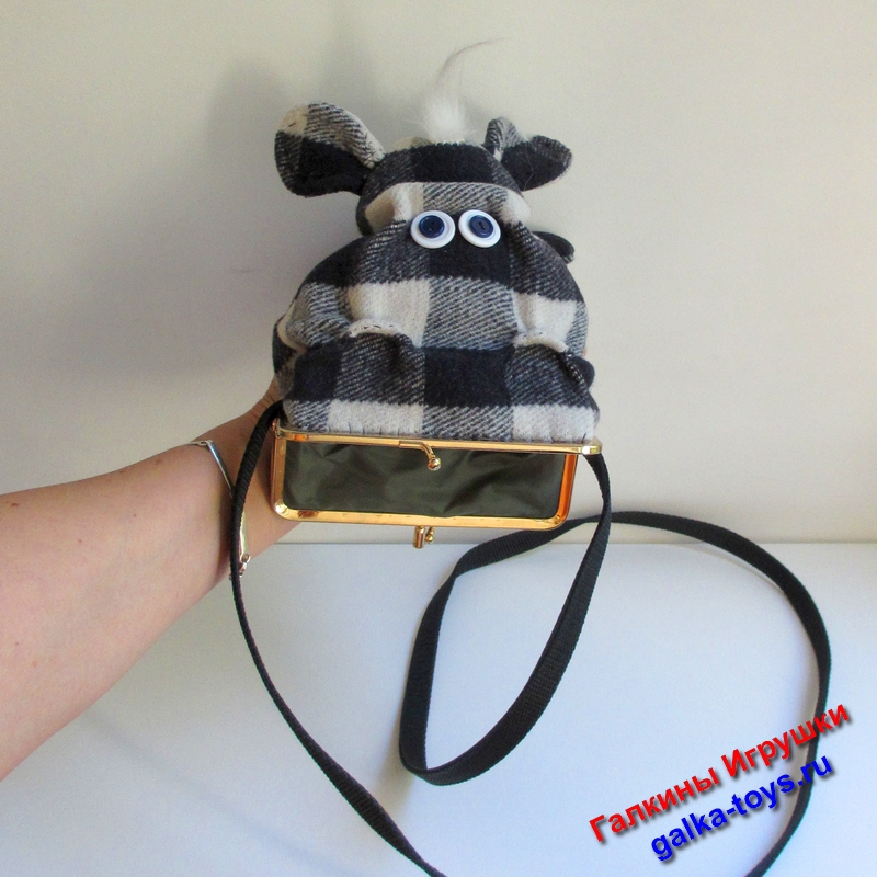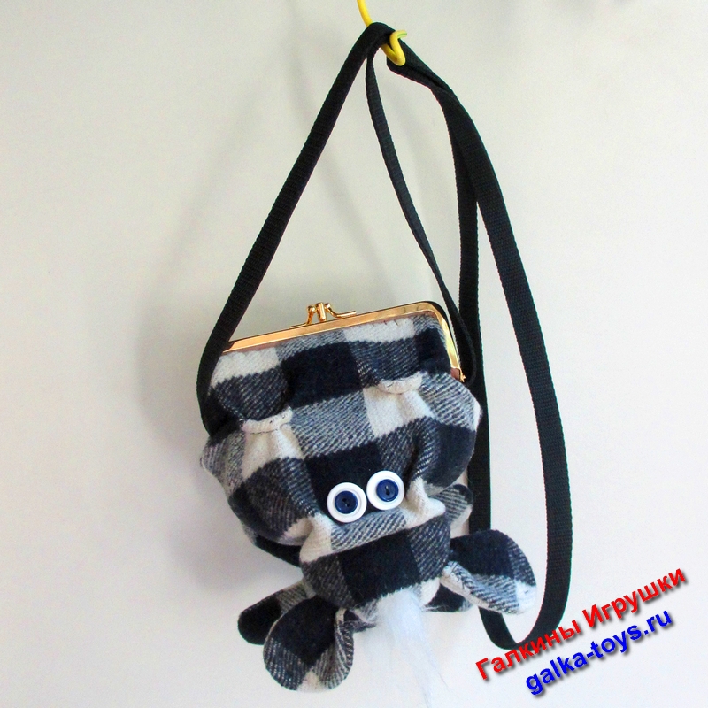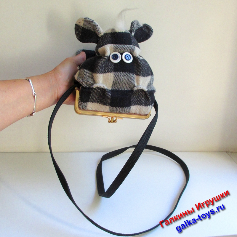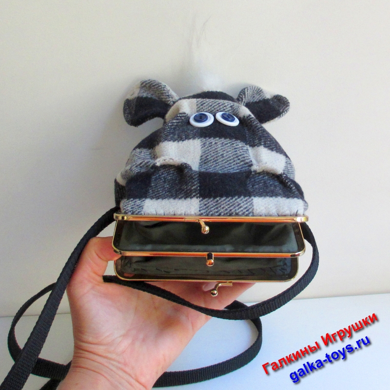 Бегемотик смешной, его рот состоит из двух отделений защелкивающихся по принципу кошелька.Тельце бегемота сшито из шерстяной клетчатой пальтовой ткани, глазки — пуговки, наполнитель — холлофайбер.