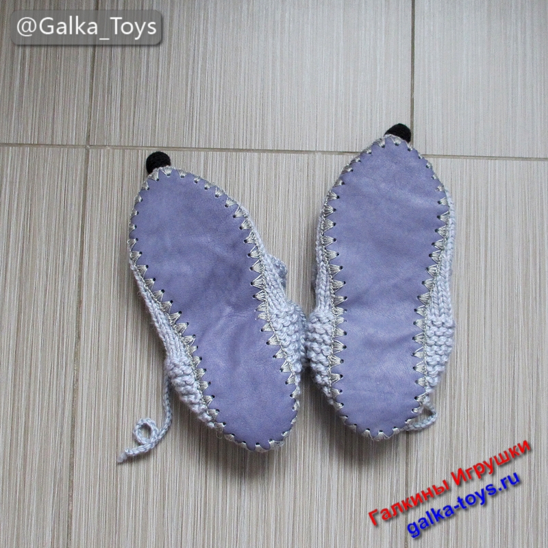 Подошва из натуральной кожи, а завязочки надежно фиксируют эти смешные тапки на ноге, чтобы они не сбежали на поиски сыра.