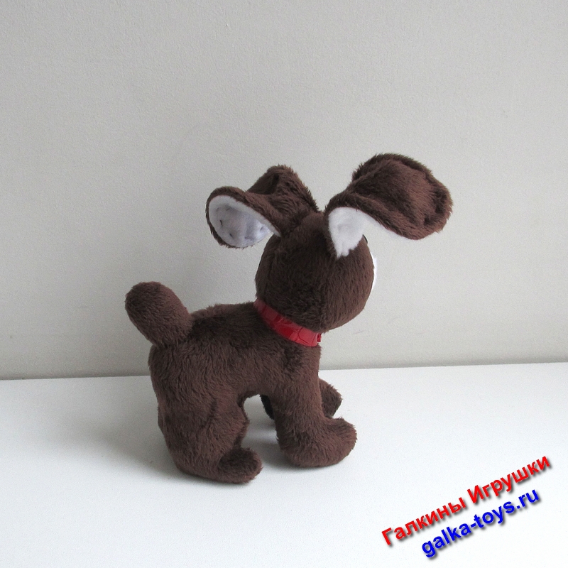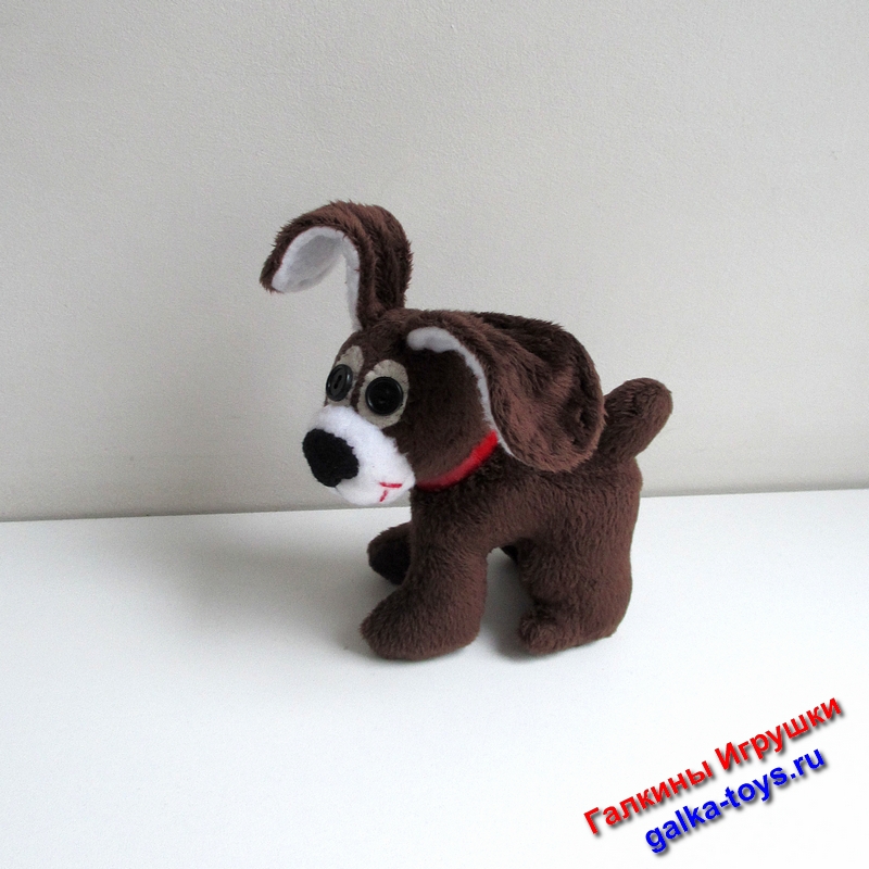 Тотошка полностью на проволочном каркасе — задорно шевелит лапками и ушами. Как у всякой правильной собаки, у него имеется красный кожаный ошейник.