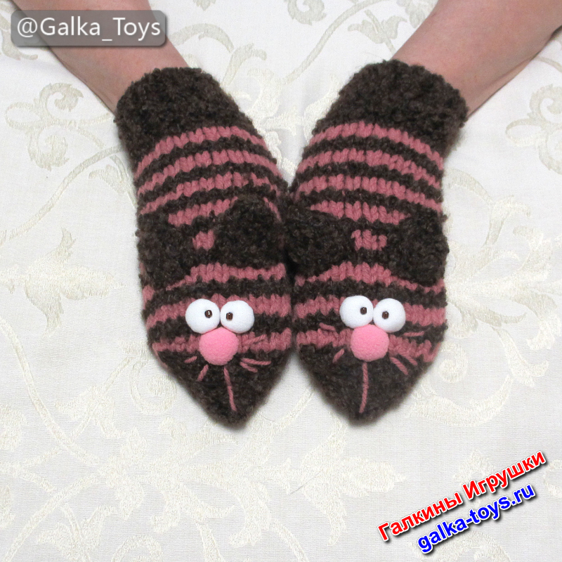 Варежки вязаные спицами согревают руки и поднимают настроение — два усатых весельчака порадуют вас на улице ?