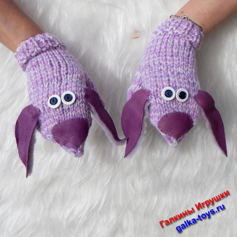 Вот такие вязаные варежки нежно сиреневого цвета будут очень актуальным подарком.
