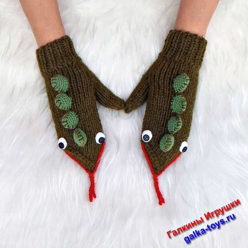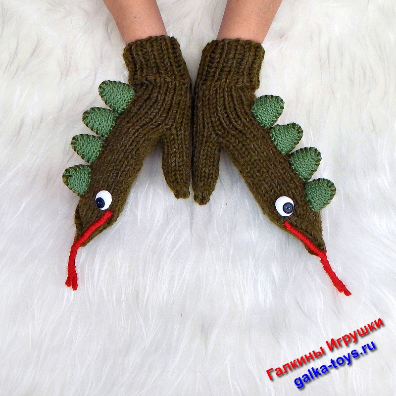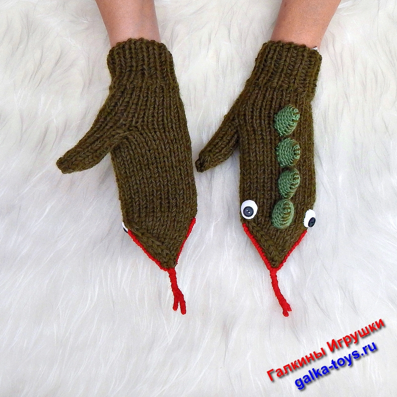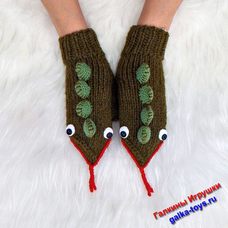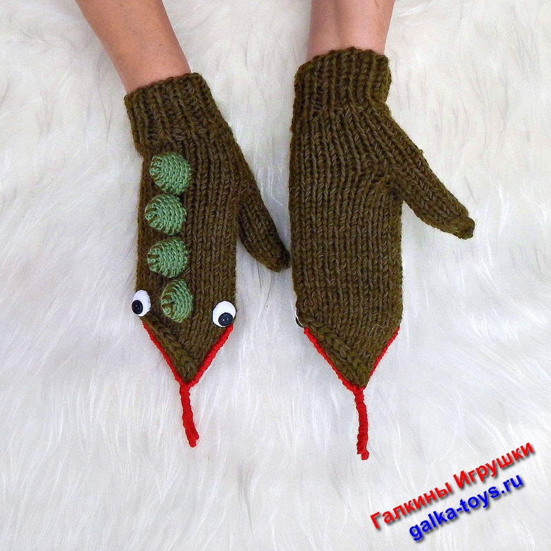 Женские рукавички спицами отличный подарок веселым девушкам, любительницам и почитательницам зелененьких Драконов.