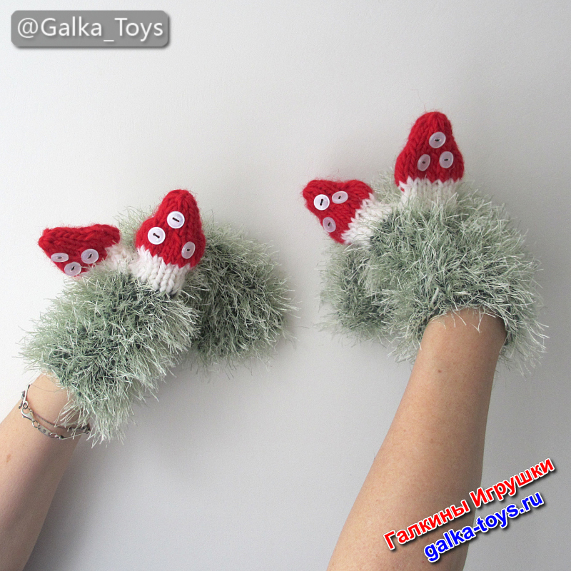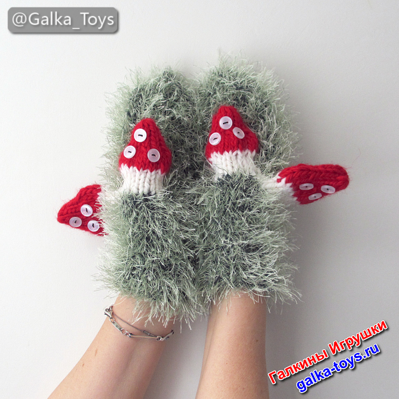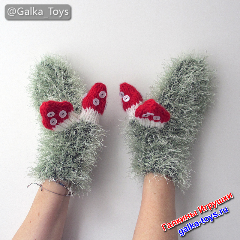 Варежки на любую руку мухоморы из полушерстяной пряжи и пушистой салатовой «травки» — мягкие, уютные и вызывают улыбку даже в самый морозный день ☃️
